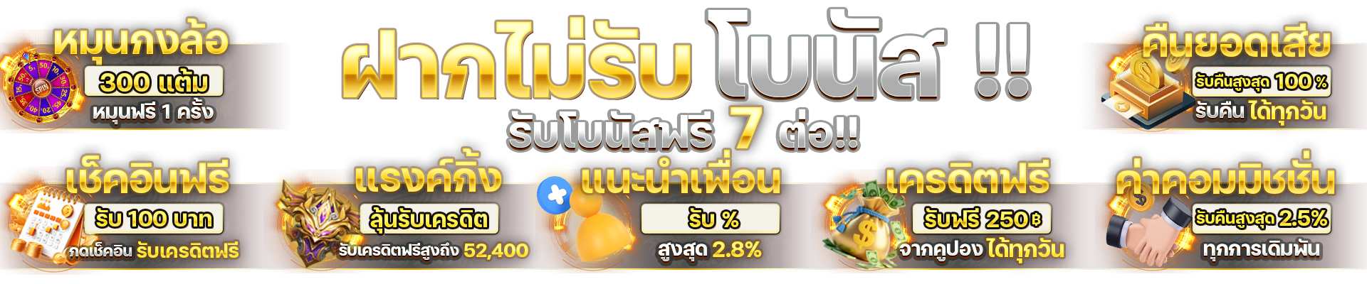 ตอบ : มีโบนัสต้อนรับสมาชิกใหม่ 100% โปรโมชั่นคืนยอดเสีย 10% ทุกสัปดาห์ และกิจกรรมแจกเครดิตฟรีประจำเดือน